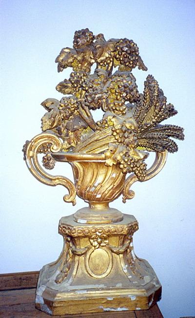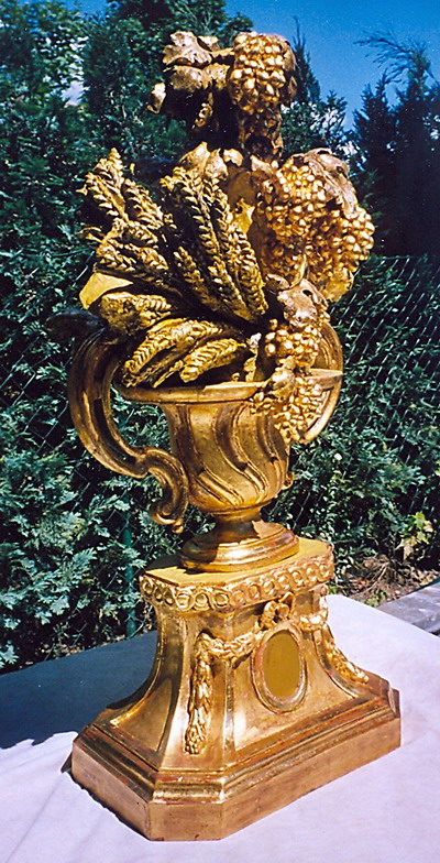 Postament Amphore um 1780 Italien mit Weintrauben und Weinlaub Polimentvergoldung auf Pappelholz