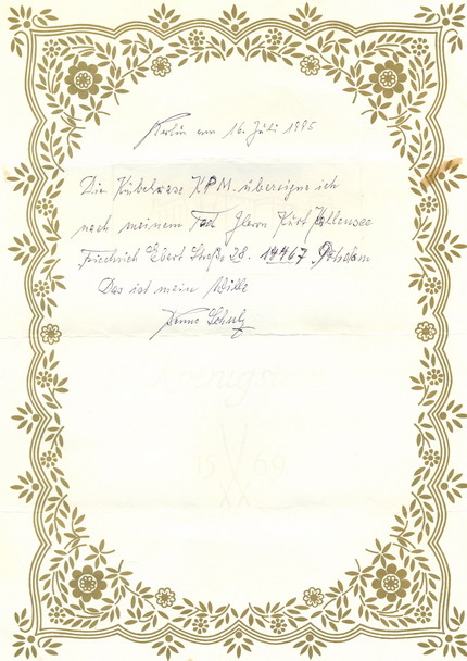 Im Testament (bitte hier anklicken) gab es überhaupt keine Auflage, die Vase habe ich freiwillig selbst übergeben.